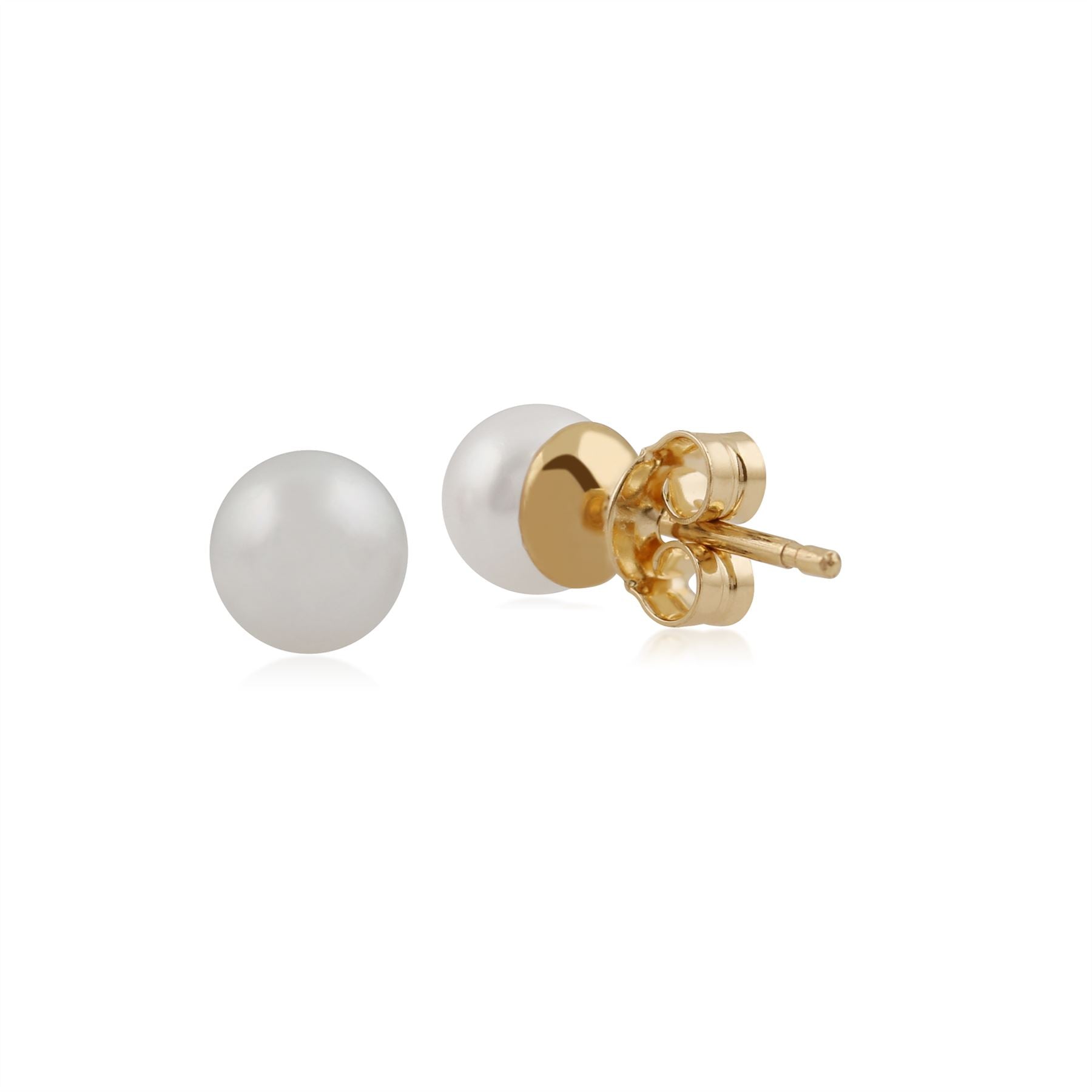 Classici orecchini in oro giallo con una perla d'acqua dolce cinese bianca. Borchie di perle semplici ed eleganti su una montatura in oro giallo da 9 ct, perfette da indossare ogni giorno e un must per un guardaroba sofisticato