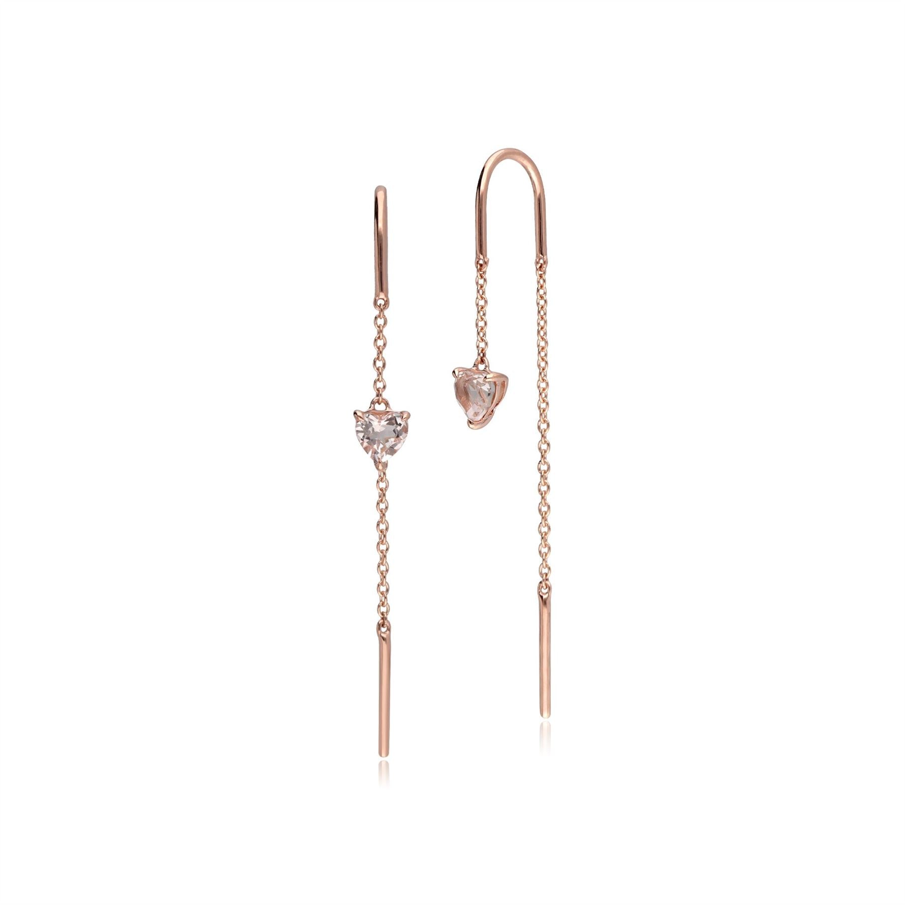 Uno splendido paio di orecchini a infila con romantiche pietre preziose di morganite con taglio a cuore che pendono da catene di oro rosa da 9 ct. Questi orecchini sono dotati di una barra liscia e di una catena per infilarli facilmente attraverso le orecchie forate.