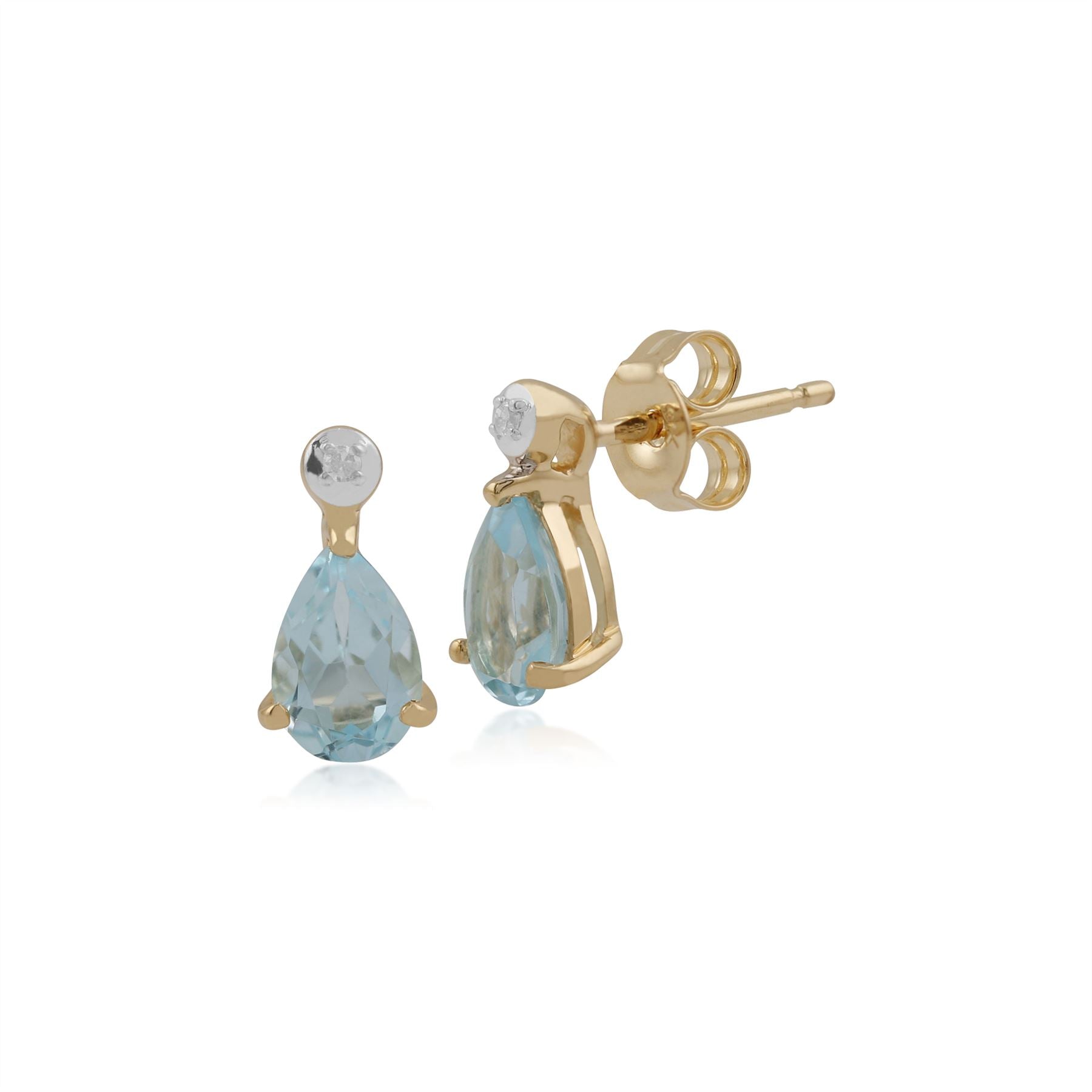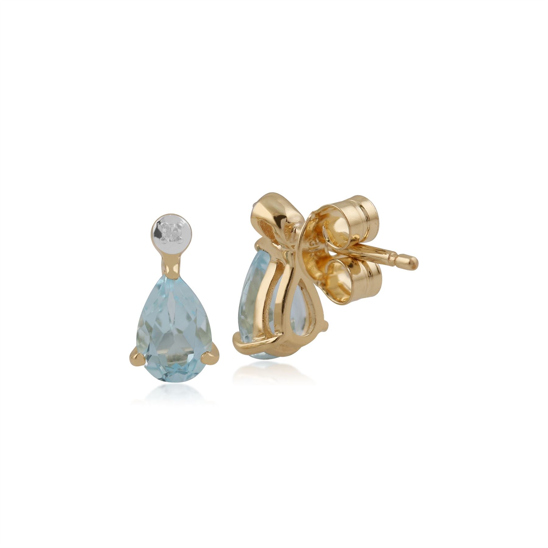 Uno splendido paio di orecchini a bottone, realizzati in oro giallo, caratterizzati da una gemma di acquamarina a forma di pera con uno scintillante diamante bianco sopra.